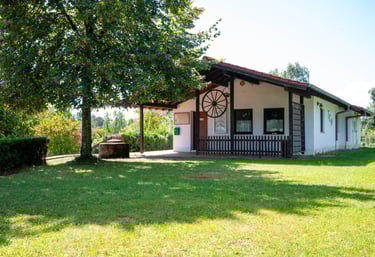 Das Clubhaus verfügt über eine Küche, einen gemütlichen Gastraum, eine Terrasse und einem festen Grillplatz.